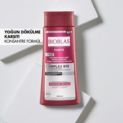 Bioblas Forte Shampoo is specially formulated with the patented BIOCOMPLEX B19 to effectively fight intense hair loss. Its plant-based ingredients strengthen hair roots, reduce shedding, and promote healthier, fuller hair growth. By thickening each strand, it restores natural volume and resilience without weighing the hair down. This powerful formula improves scalp balance while nourishing hair from root to tip. Clinically tested and dermatologically approved, Bioblas Forte Shampoo ensures healthier, shinier, and more resistant hair with continued use. With 93% brand satisfaction, it provides trusted care for both men and women who struggle with excessive hair loss.+