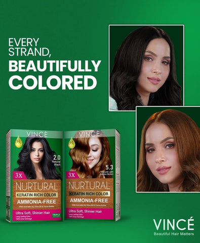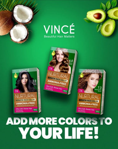 Vince Nurtural is an innovative, cutting-edge formulation; enriched with the nourishing blend of Keratin, Olive Oil, Cocoa Butter, and Avocado Oil, which intensely helps to nutrify the hair fiber while penetrating deep into every hair strand so that the hair looks shiny, healthy, silky.