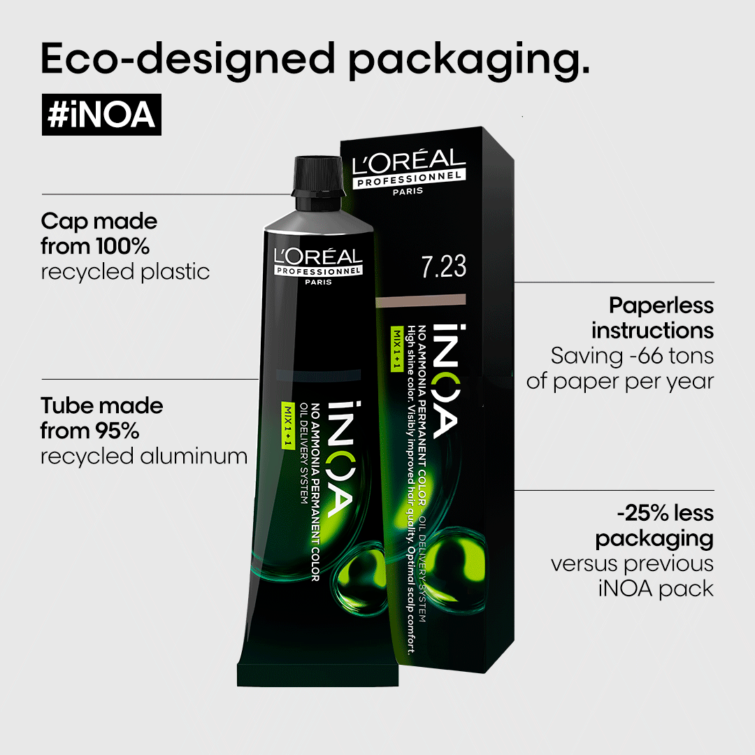 Discover the new and improved L'Oréal INOA, a revolutionary ammonia-free permanent hair color that delivers exceptional results with superior scalp comfort. This advanced formula is designed for professional use and offers brilliant color, intense shine, and a luxurious hair feel.