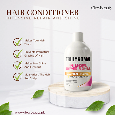 Experience the ultimate care with Truly Komal's Intensive Repair Shine Hair Conditioner.