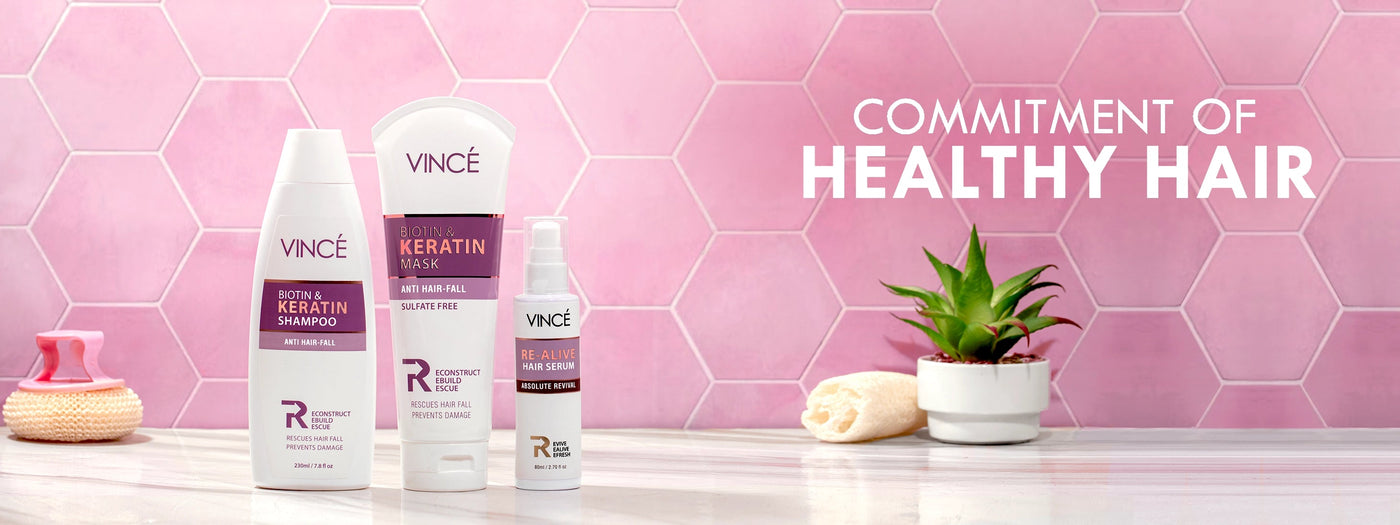 After shampooing with Vince Biotin & Keratin Shampoo, apply on damp hair evenly from root to tip and leave in for 3-5 minutes. Rinse thoroughly with water. Use at least thrice a week.