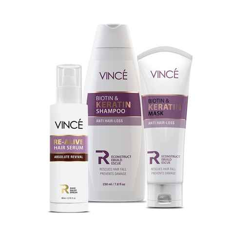 Vince Anti Hair Fall Kit helps to promote healthier, shinier, glossier, and thicker hair. This ultra-nourishing kit helps to control hair fall, repairs & moisturizes dry, dull, damaged hair, and encourages hair growth.