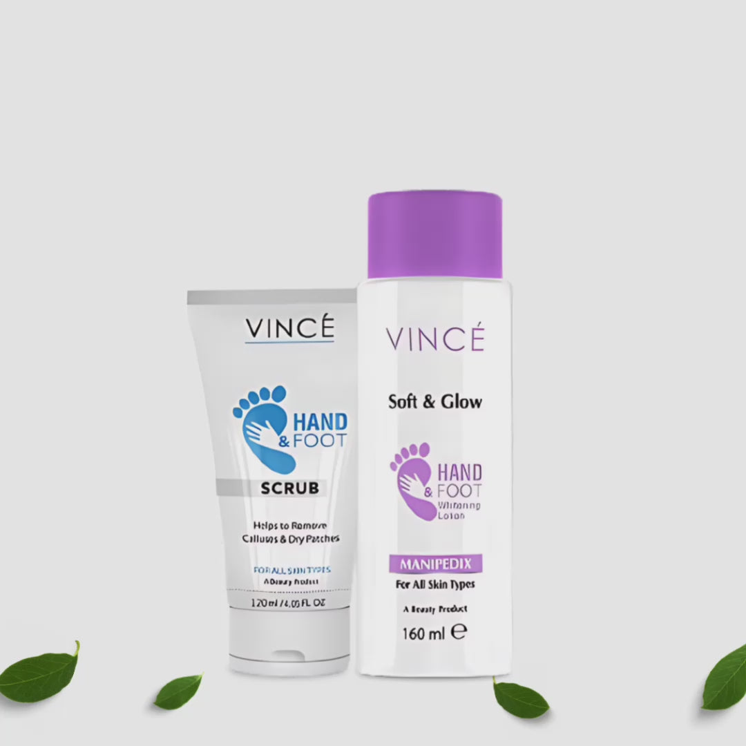 Vince Hand & Foot Scrub & Lotion is an ultra-powerful kit that is the ultimate solution to your extremely tanned and darker hands & feet. This kit helps to slough off rough & dead skin of your hands & feet & makes them brighter, softer, smoother, & radiant.